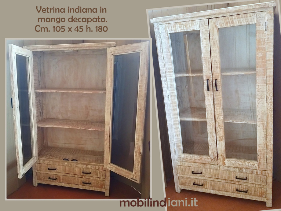 Vetrina indiana in mango decapato. Cm.105x45 h.180 India