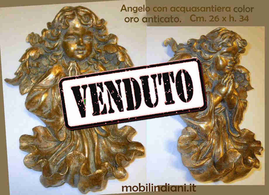 Angelo con acquasantiera. Cm.26 h.34 Paese India